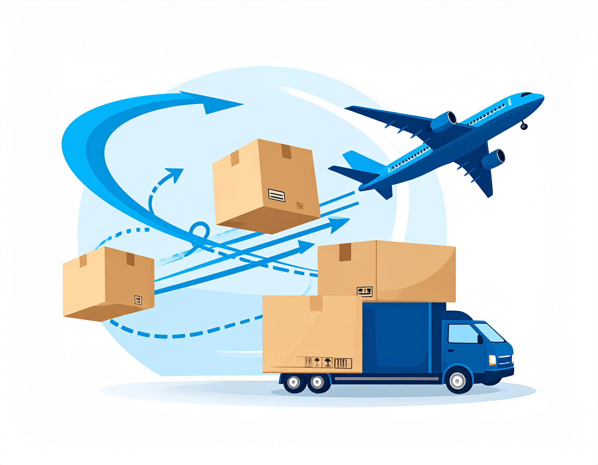 Purolator digital transformation concept visual, highlighting faster reporting, forecasting, and reduced supply chain delays
